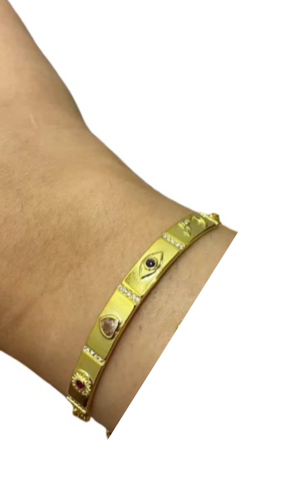 Pulsera de plata de ley chapada en oro amarillo con Talismán Cósmico, hecha con materiales que armonizan para proteger tu energía.